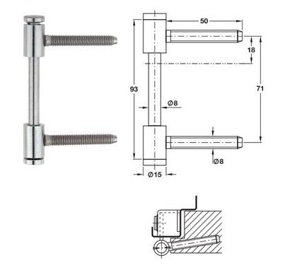 - Acél tokba: Pánt alsórész (V8100) + pánt felsőrész (V0020)